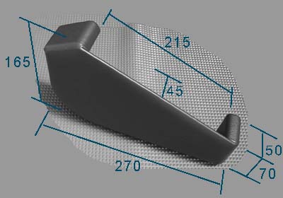 ニーパッド・ドアポケット ¥14、500 ニーパッド効果のあるドアポケット 運転席右側(助手席側は受注後対応) 11R/21R、共用 内張りを外し、木ビス止め(内張り穴あけ必要) 材質 アルミ+木枠 ビニールレザー巻き仕上げ 注意:シート形状によってはスライド時に干渉します コンソール右側下部分にパーツ等有りますと干渉する場合が有ります(装着例参照) 寸法図 装着例