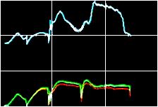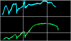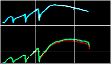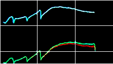 横軸車速、縦軸は馬力とトルク。目盛りが車によってまちまちなので、単位は付けていません。