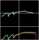横軸車速、縦軸は馬力とトルク。目盛りが車によってまちまちなので、単位は付けていません。